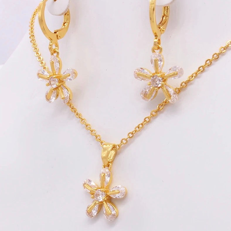 Ensemble TUMAINI collier boucles d'oreille femme fleurs ylang